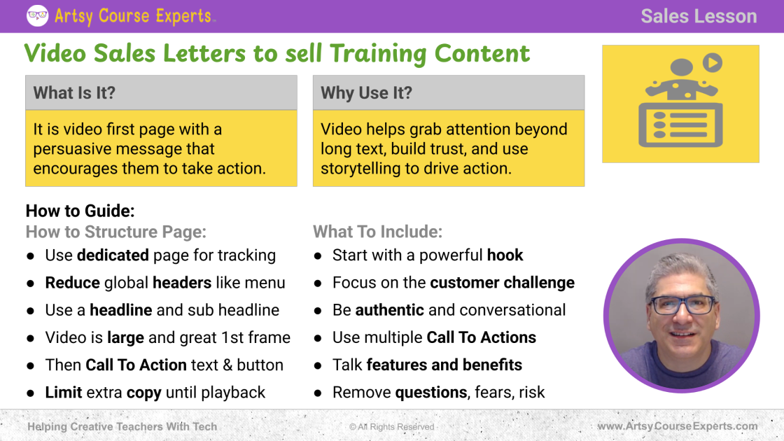Power Up Your Creative Course with Video Sales Letters  – By ArtsyCourseExperts