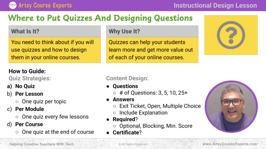 - Designing quizzes that fit well with your learning platform