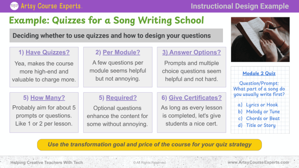 In this section, we’ll explore how a hypothetical songwriting school could effectively incorporate quizzes into its curriculum to enhance student engagement and course value.